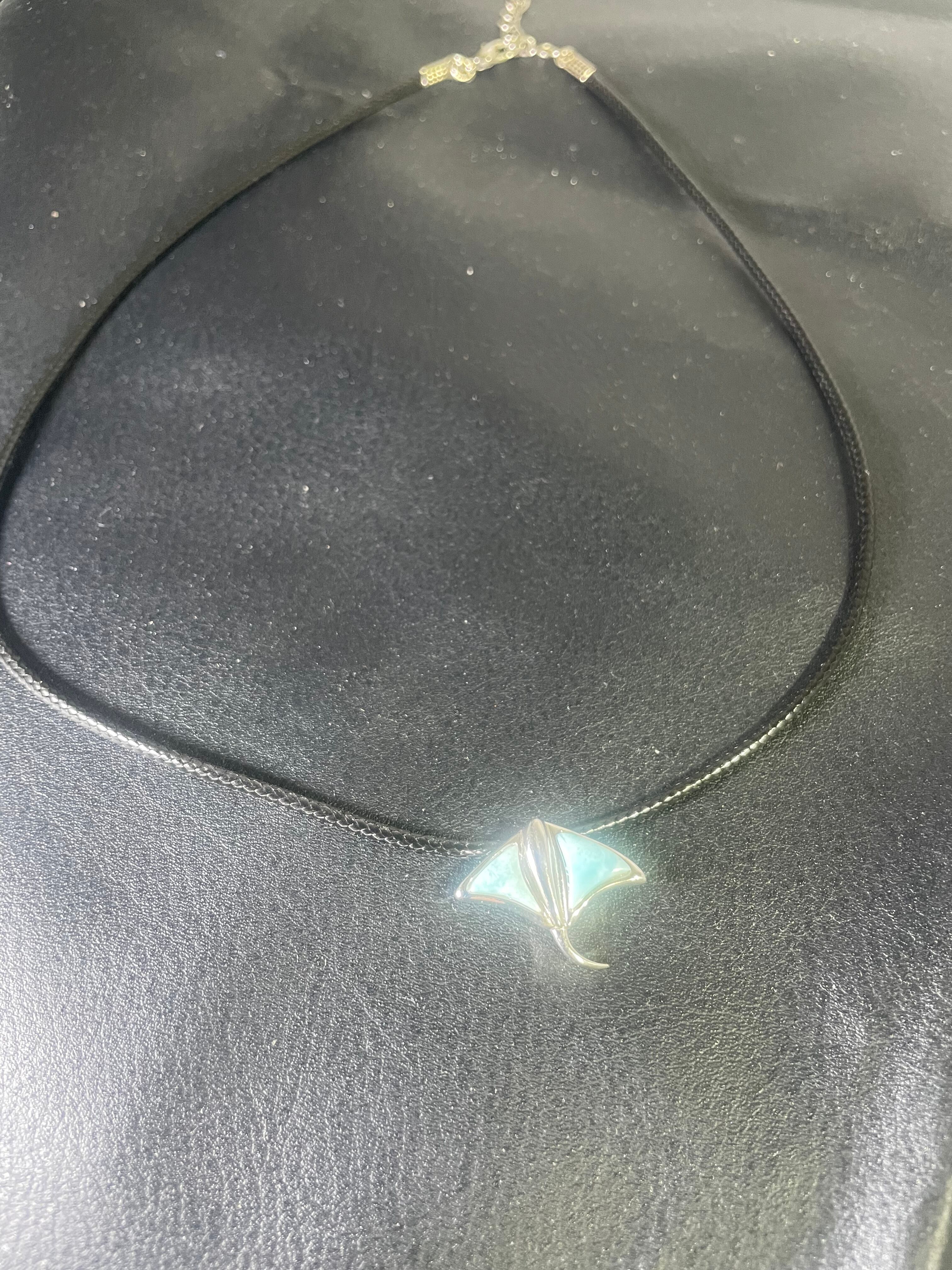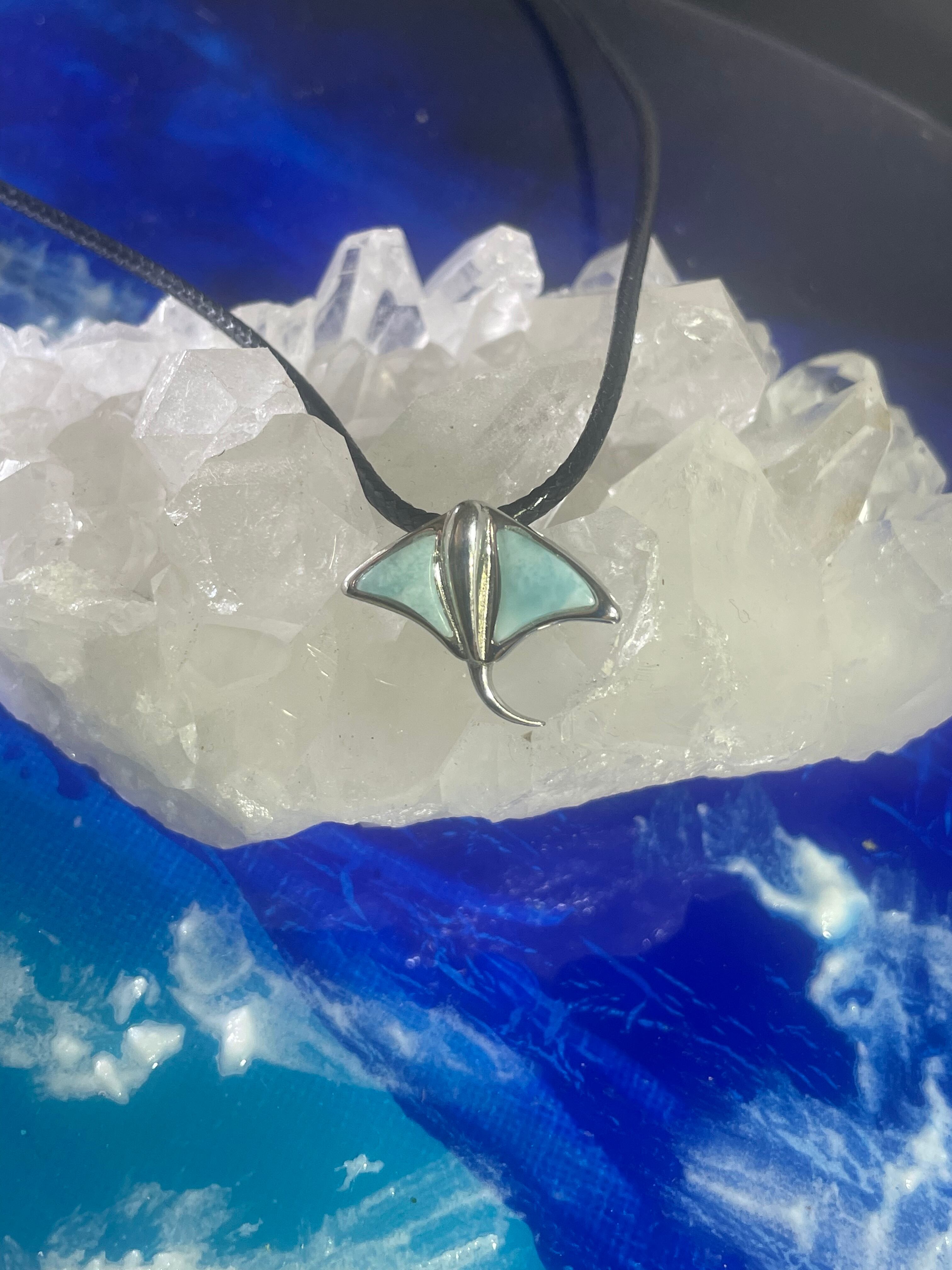 海の底から発掘された輝きのあるラリマーを使用した、幸運を招くと言われるアクセサリー。エイの形をデザインしたスターマークが、運気アップに一役買ってくれます。